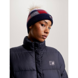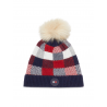 Fleece lined knitted check pattern Beanie with Pom-Pom & silicon TH Logo circle logo detailing.