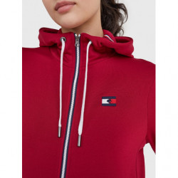 A functional training jacket in the characteristic Tommy Hilfiger Color block style with side pockets with zip, contrast zip in the front center and a hood with drawstring and metal cord ends. Embroidered logo on the left torso.